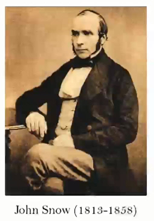 • Dr John Snow (1813-1858) was a famous physician, widely recognized as a leading pioneer in the development of anaesthesia in Britain, as well as one of the founding fathers of epidemiology.