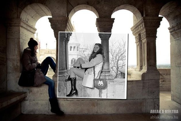 In the series “Ablak a Múltra” (translating to “Window to the Past”), Zoltán overlays black and white images from the website Fortepan onto his own images with a modern backdrop.