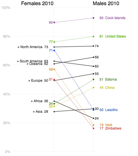 The third example shown below charts female values on the left against male values on the right in order to emphasize gender differences.