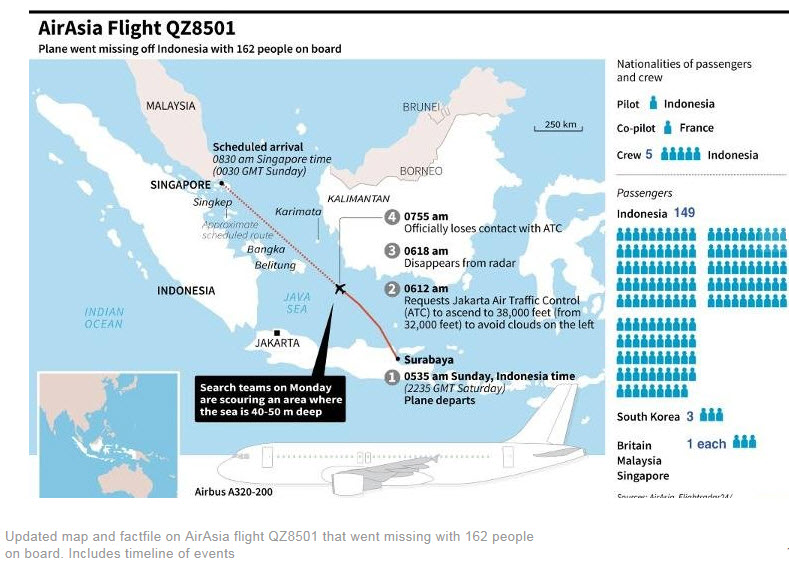 [1] Channel NewsAsia, LIVE BLOG: Missing AirAsia flight QZ8501, December 28-29, 2014, http://www.channelnewsasia.com/news/live-blog-missing-airasia/1553132.html.