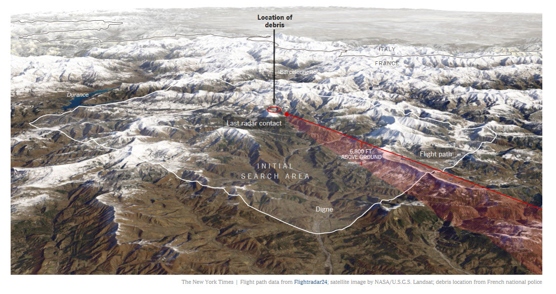 Source: New York Times, Where the Germanwings Plane Crashed, March 25, 2015, http://www.nytimes.com/interactive/2015/03/24/world/europe/germanwings-plane-crash-map.html?smid=tw-nytimes&_r=1.