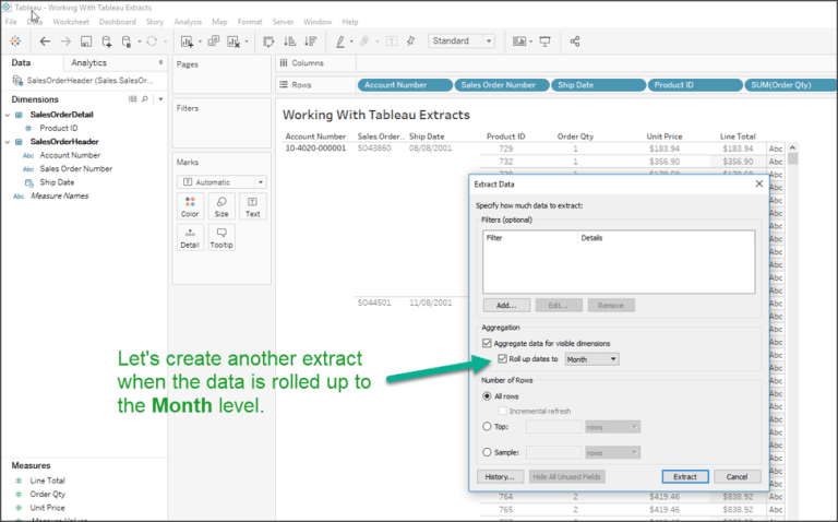 Now that we understand how to aggregate a Tableau data extract is, let’s see how we can aggregate one to a specific level.