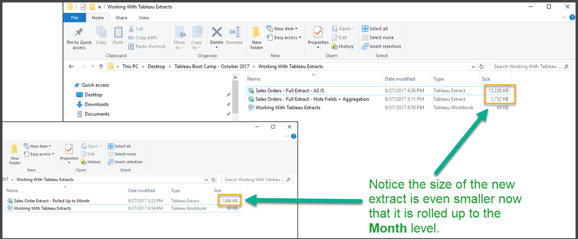 In Part 3, and our final part of this series on Improving Performance with Data Extracts, we will aggregate a Tableau data extract to the Month level, and review how you can unpackage a .TWBX file.