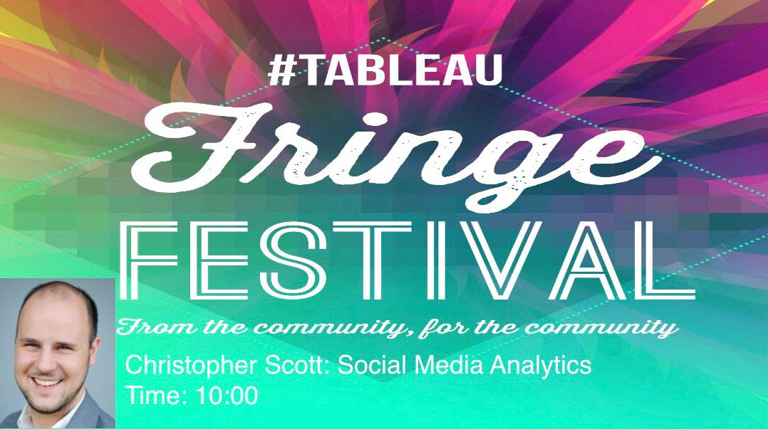 I am continuing my recap blog posts of the Tableau Fringe Festival. Today, I am going to review Chris Scott’s (photo, right) presentation, Listen: Social Media Analytics.
