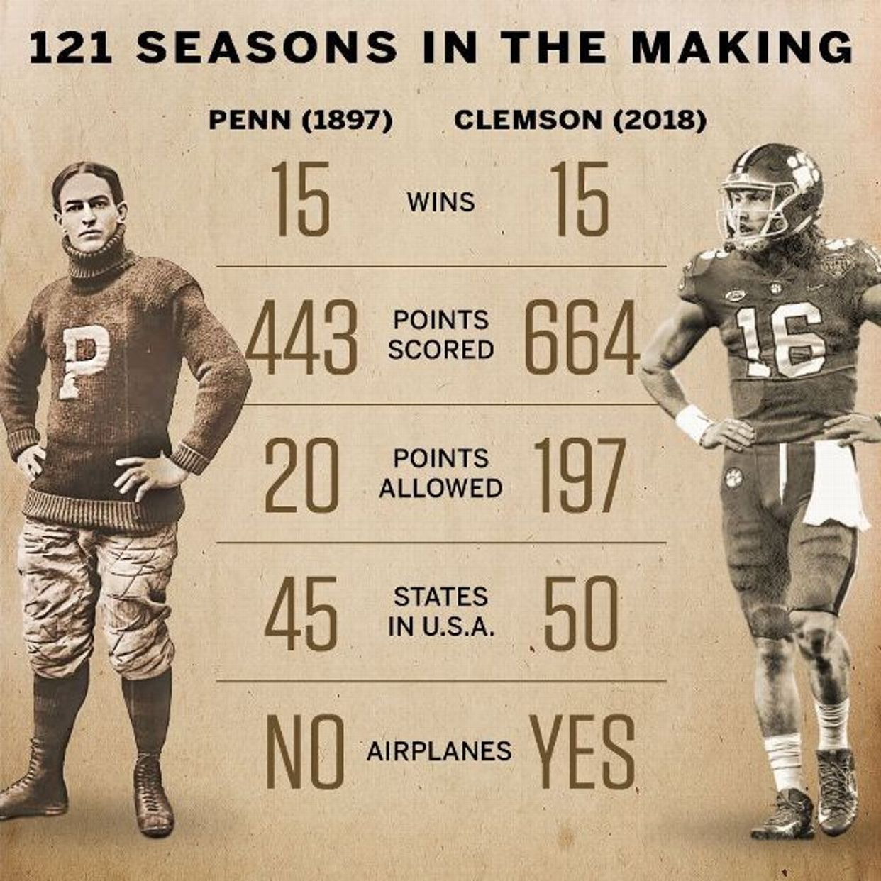 January 8, 2019 Sports DataViz: Clemson is the first 15-0 team since Penn in 1897 Source: ESPN, January 8, 2019. Share this: Click to share on X (Opens in new window) X Click to share on Facebook (Opens in new window) Facebook Like Loading... Related