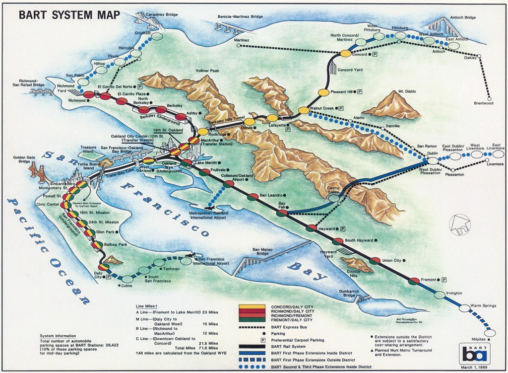 Historical Map: BART System Map and Planned Extensions, March 1, 1989