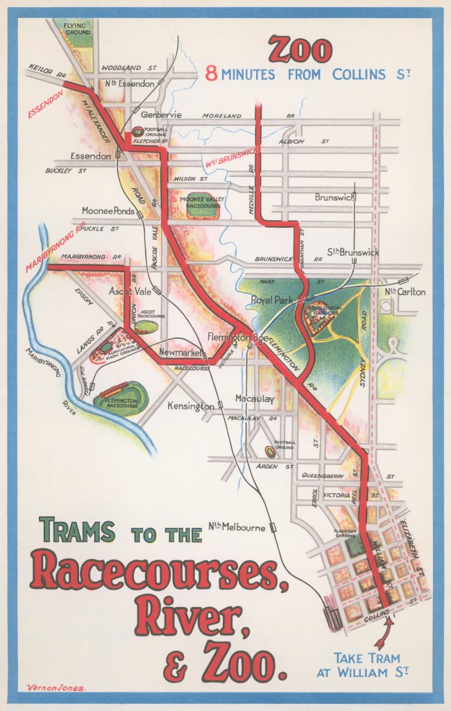 Historical Maps: Melbourne Tram Destination Posters by Vernon Jones, c. 1930s