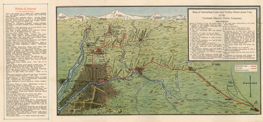 Historical Map: Map of Interurban Lines and Trolley Observation Trip, Portland Electric Power Company, c. 1923
