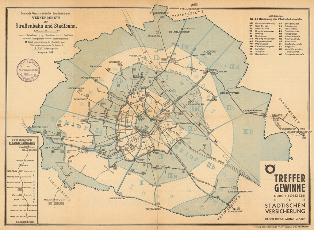 Historical Map: Strassenbahn and Stadtbahn Map, Vienna, Austria, 1933