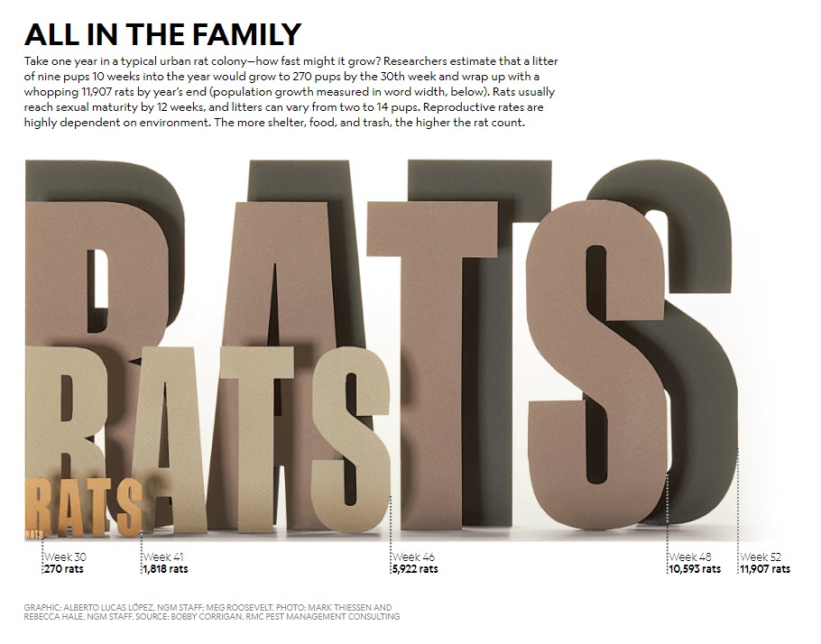 National Geographic just published a great story titled How rats became an inescapable part of city living in the April 2019 issue of National Geographic. I wanted to share with you a data visualization they included in their article.