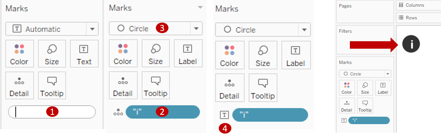 - Change the size and colour of the circle as you see fit and adjust the font and colour of the “i” (I used Arial MT Bold in my example)