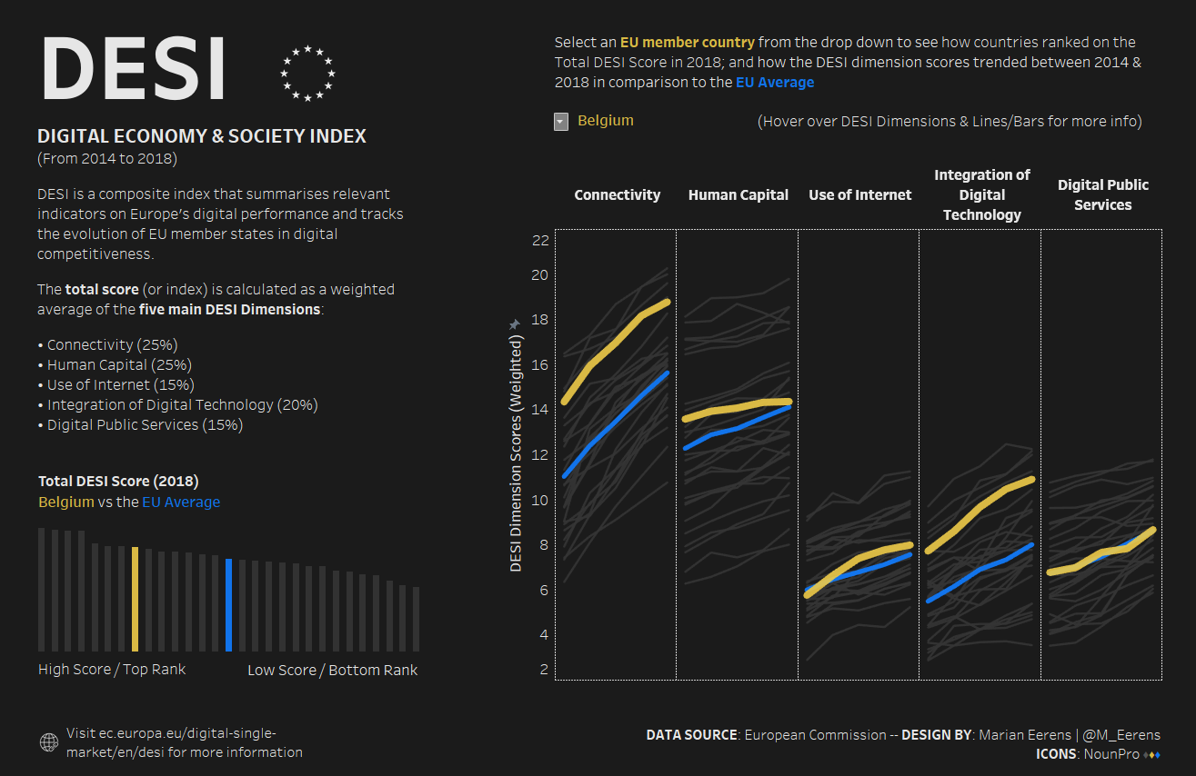 Michael: Hello Marian. On Tableau Public, your dataviz for DESI: Digital Economy & Society Index was recently selected as Viz of the Day (VOTD).