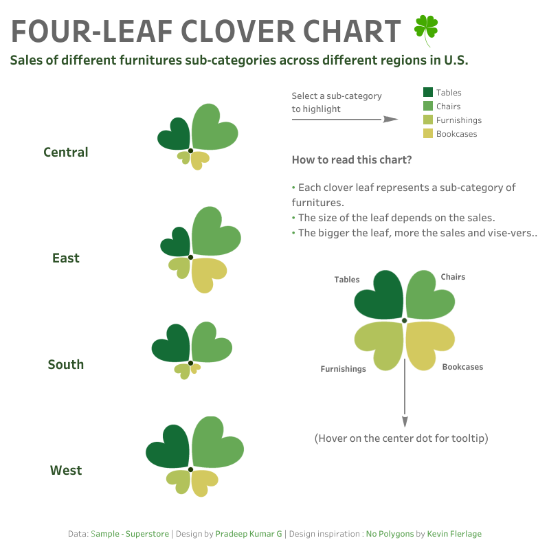 Inspired by his work, I have tried creating my version of “Four Leaf Clover Chart” following the same technique.