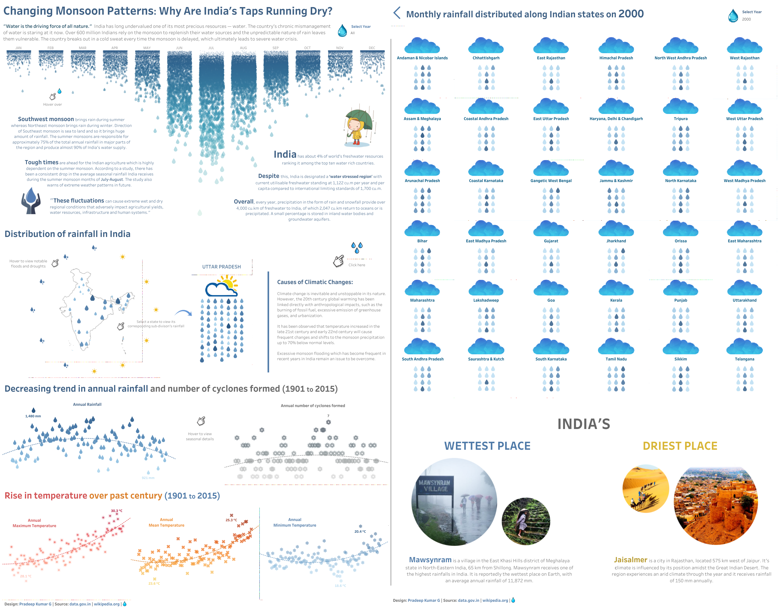 Pradeep: I still remember the time when I was doing my first Iron Viz 2018 (Water Feeder). That time I was absolutely new to Tableau and I just thought of giving it a try. I just downloaded the data from public government site and created visualization about Monsoon patterns in India