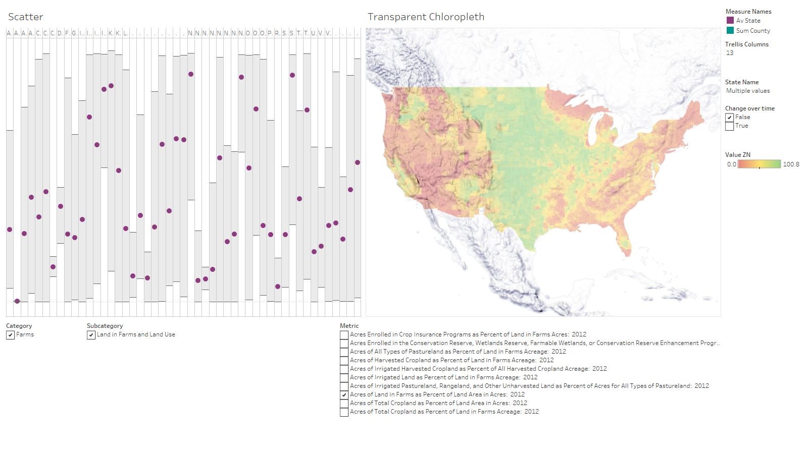 Middle of the viz: Explore how the states vary and crops are grown through all counties.