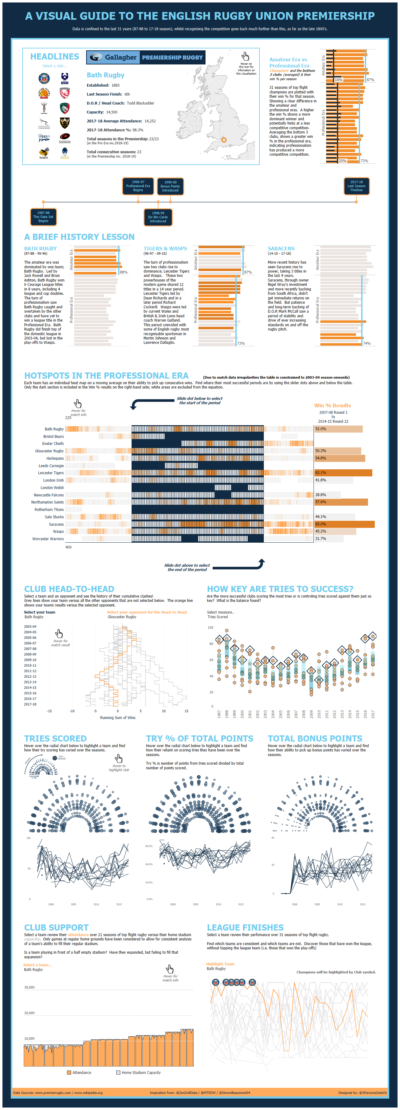 I then didn’t use Tableau for another 3 months! Work got crazy, pressure was great, I didn’t have time to do anymore. It was a great frustration to me, because I found a new tool I loved, it allowed me to have fun and be creative, but I didn’t have time to use it! So the decision was made, I needed to leave to find a job that allowed me to use Tableau on a daily basis, I couldn’t see the end in my current role at the National Trust. So in August 2018, I set to producing a few more vizzes to increase my online profile. Luckily another one of those was VOTD – where I sourced my own data and visualized The Rugby Union English Premiership League History.