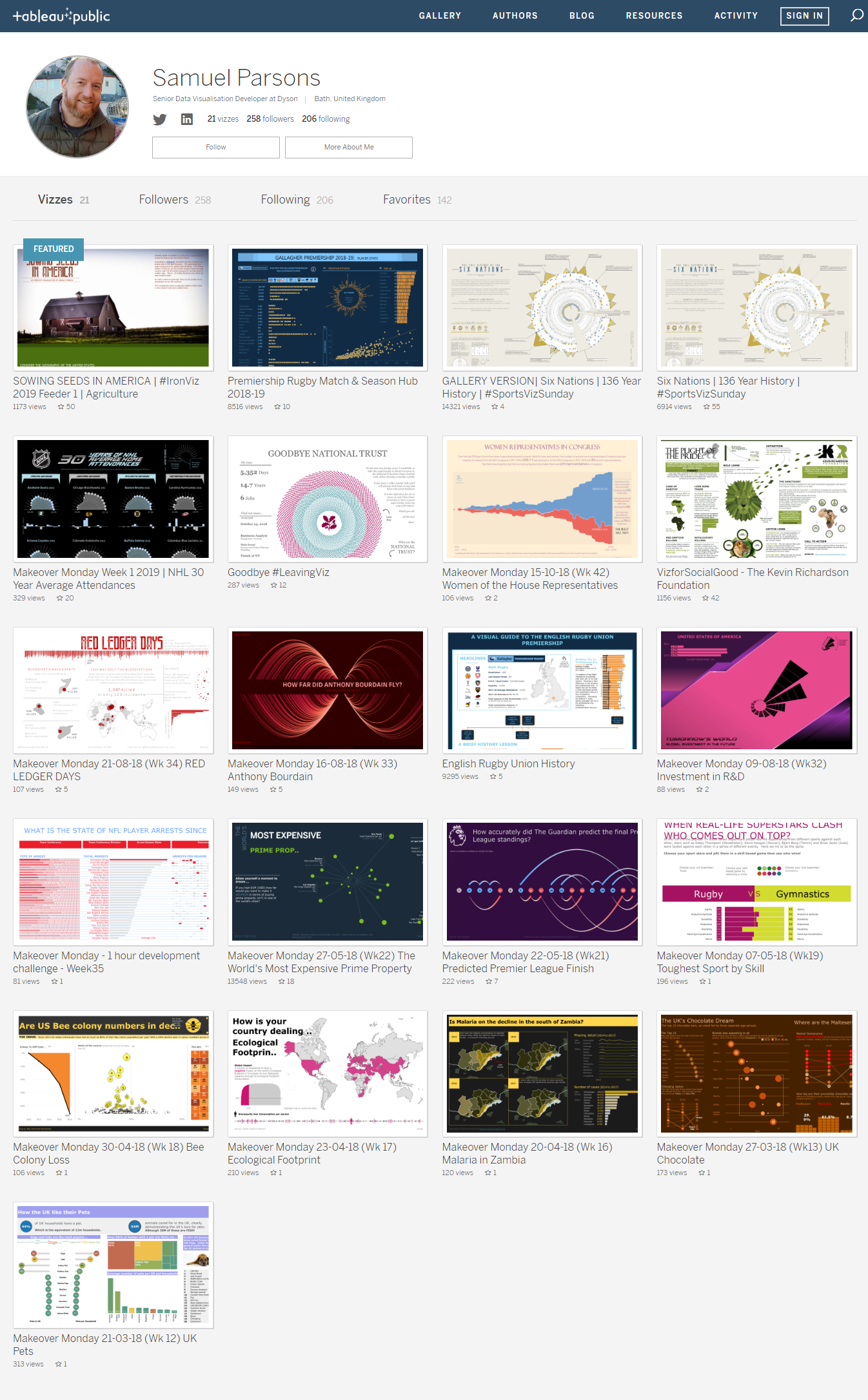 Sam is an active member of the Tableau community and has recently participated in #IronViz for the first time, finishing 2nd in the Global Feeder 1 – Agriculture. He has three #VOTDs, with two of those coming from vizzing data from the sport of Rugby Union; which has now been demoted to 2nd in Sam’s list of passions, after Tableau!