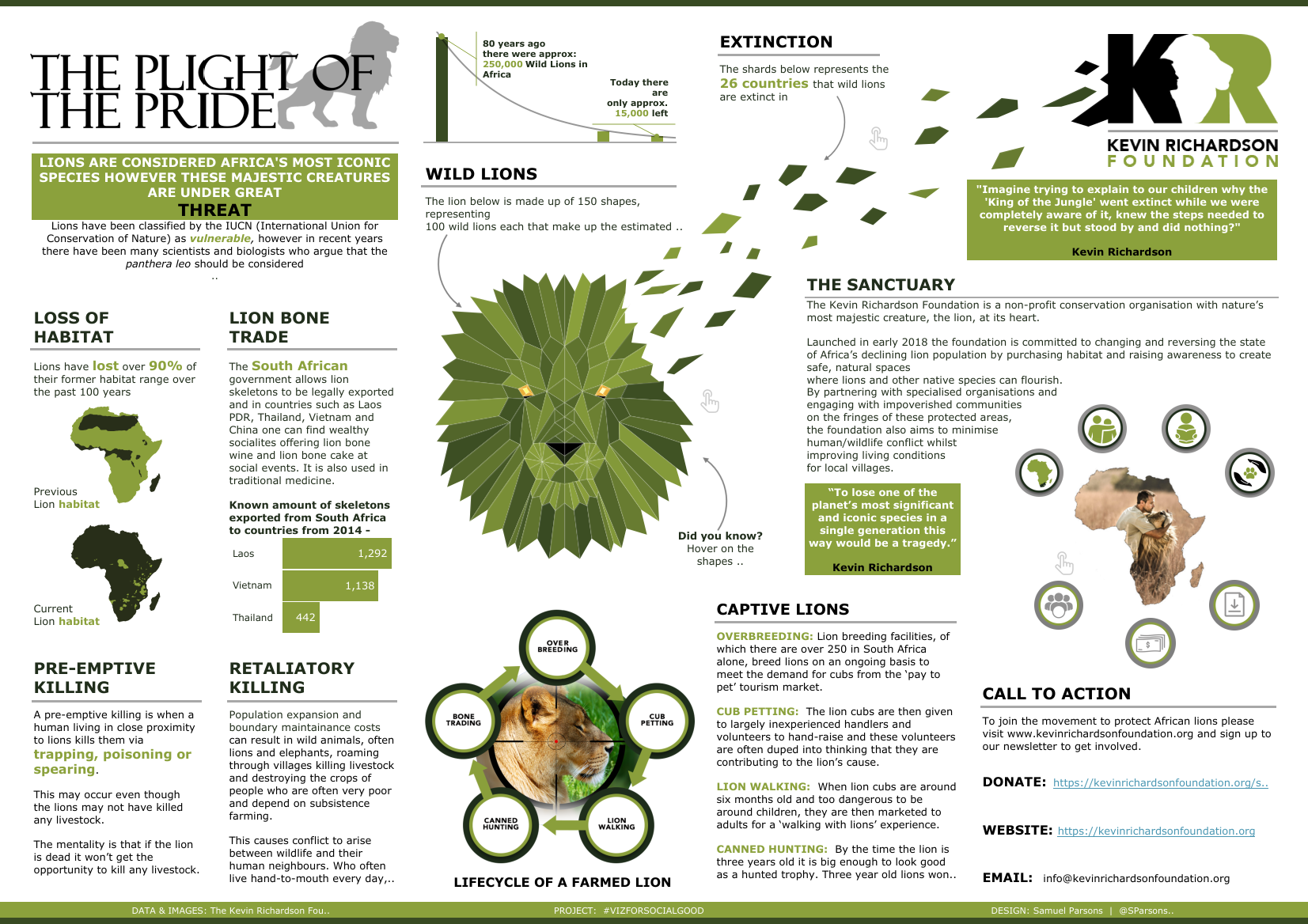 Michael: You have been involved with #VizForSocialGood. I loved your The Plight of the Pride data visualization. Can you tell us a bit about The Kevin Richardson Foundation?