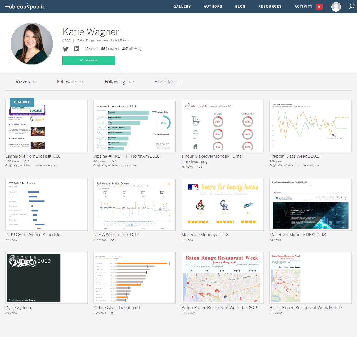 Katie: My husband and I chat frequently about our journey to Financial Independence. As we leverage Tableau in these decisions, I’m hoping to find better ways to share the information with our community. Money is always a tricky topic, but my hope is that, in sharing our story, we might motivate others to think analytically about their financial futures. In the meantime, I’ll continue creating vizzes that help in my everyday life. I’m currently tracking sitting/standing hours at my desk each day to find patterns. I’m also attending a big trip to Europe next year that lends itself quite nicely to a beautiful dashboard. My hope is that I can continue teaching, sharing with, and learning from the community that has given so much to me! I’m so honored by the opportunity you’ve provided to share my story. Thanks, Michael, and for everything you do for our community.
