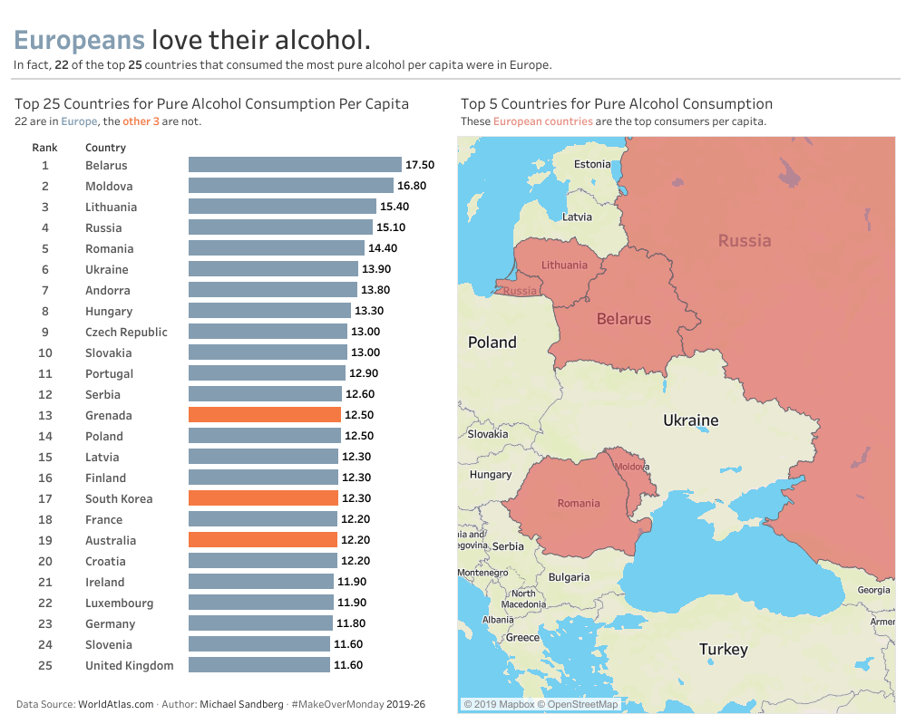 I saw this as good information to know, but it was not something I needed to use for the story my dataviz would tell. I could have done additional research to find alcoholism rates in each of these countries, but I felt it was out of scope of the story.