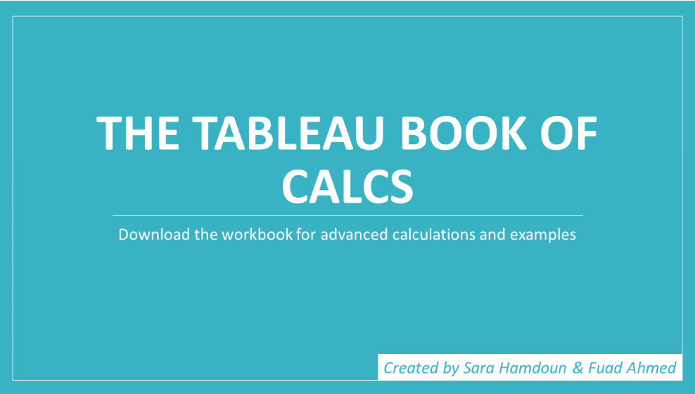 Sara and Fuad: In terms of ‘The Tableau Book of Calcs’ we plan to update and maintain the workbook with additional examples, as well as improve the user experience.