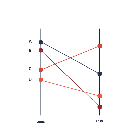 - The hierarchy of a dimension’s values in both 2005 and 2015 [the order of the dimension].