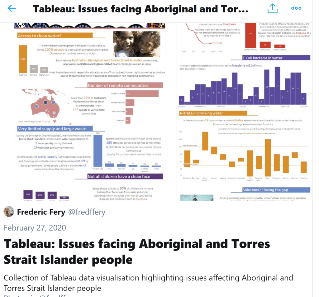 Michael: Your recently posted on your website a blog post titled Highlighting Australia’s First Nation people issues with Tableau data visualisation. Can you tell my readers why it is important that we understand the issues affecting Aboriginal and Torres Strait Islander people in Australia?