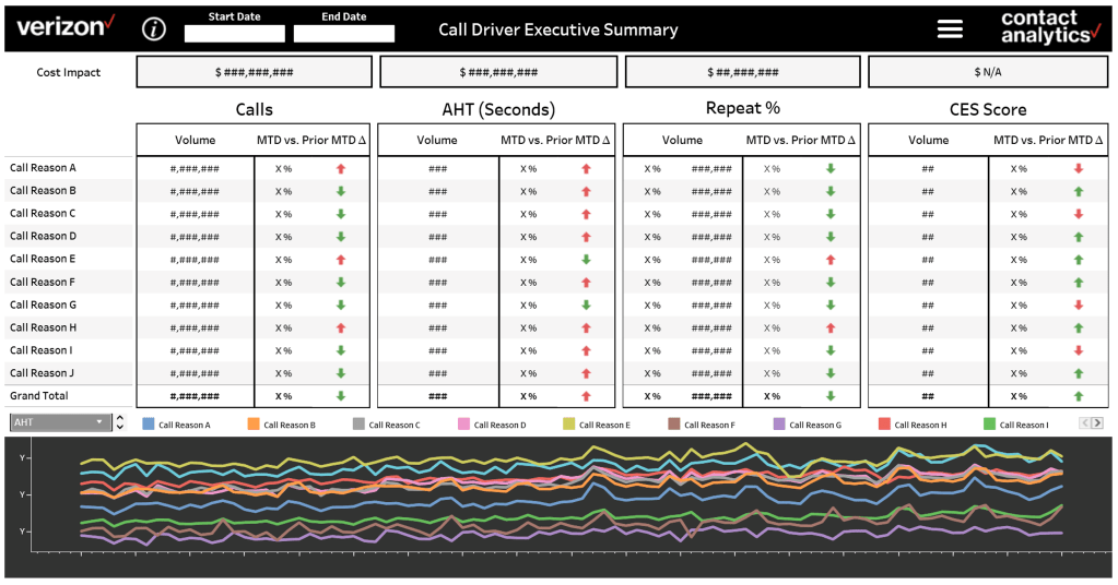 From an executive perspective, sometimes we have an interesting problem in Verizon with respect to analyzing call reason categories. It is the opposite of what most other organizations have. We have a problem of plenty or a problem of choice if you will. When our executives want to analyze the call reasons sometimes they come to a landing page on which we have 65 tabs giving call reason information. Even when they get to the individual tabs most of them although insightful are focused on the metadata rather than synthesized insight. They are too granular. An analogy I like to use is that a lot of the times executives are looking for a balance sheet of the business. A balance tells you the state of the business at a given snapshot of time laying out the assets, liabilities and shareholder’s equity. What we were giving the executives is the accounting ledger instead of a balance sheet.