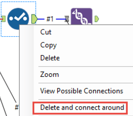 - Delete and connect around: When deleting a tool that is connected, Right-Click on the tool and select Delete and connect around.