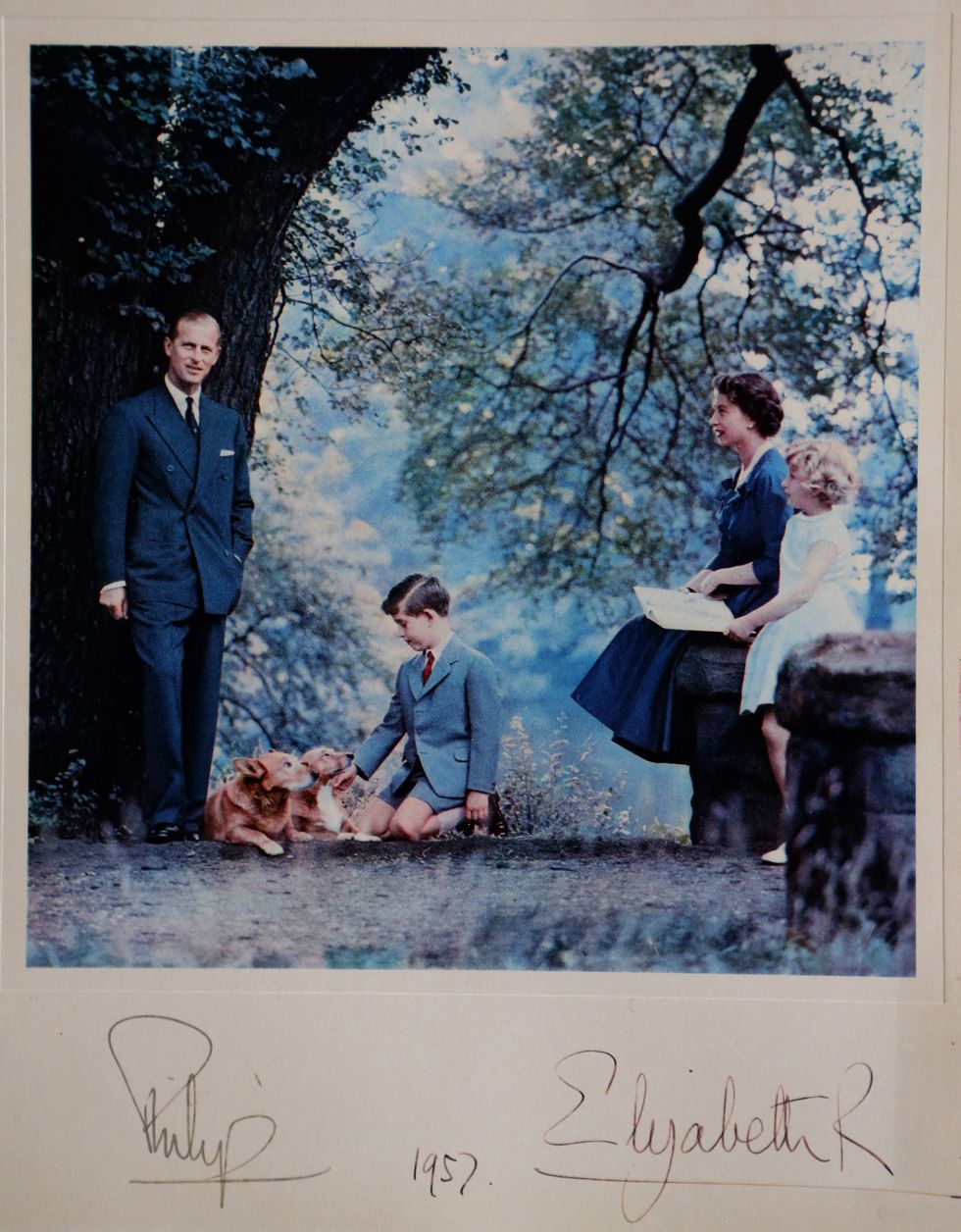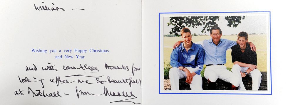 (Above) From 1914, a Christmas card from Queen Mary and King George to the British troops. (Above) From 1942. A young then-Princess Elizabeth—who went on to become Queen Elizabeth. She is Prince Charles’ mother, and grandmother to Prince William and Prince Harry. This is her holiday card to the Grenadier Guards regiment of the British Army.(Above) From 1952. A young Prince Charles and Princess Anne with their parents, Queen Elizabeth and Prince Philip. (Above) From 1957. A color Christmas card featuring the royal family and two of their dogs (Prince Charles is seen kneeling and petting the dogs).(Above) From 1984. Diana and Charles with Prince William and Prince Harry.(Above) From 1999. Prince Charles’ personal Christmas, featuring him with William, and Harry.(Above) From 2005. Charles and Camilla used this photo from their wedding as their official card in 2005—the two people next to Camilla are her kids Laura Lopes and Tom Parker Bowles.(Above) From 2015. Charles and Camilla in a more casual, relaxed look.(Above) From 2018. The Duke and Duchess of Cambridge and Prince Louis, Princess Charlotte, and Prince George.(Above) From 2018. Meghan and Harry watching fireworks at their wedding. The couple’s first Christmas card.