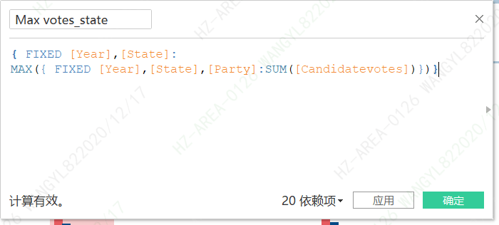 IF { FIXED [Year],[State],[Candidate]:SUM([Candidatevotes])} = [Max votes_state]