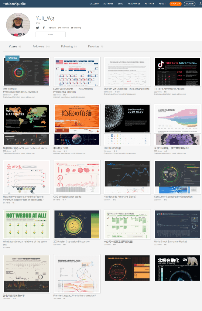 At the year of 2019 Tableau came into my life and I just fell in love with it. Gradually Tableau became a tool for me to explore the world and express my thoughts. And I soon began to output some work. I really hope that I can create more visualizations, to distil the data, information, and knowledge into beautiful, useful graphics and diagrams and make them into impactful, just as the following picture shows.