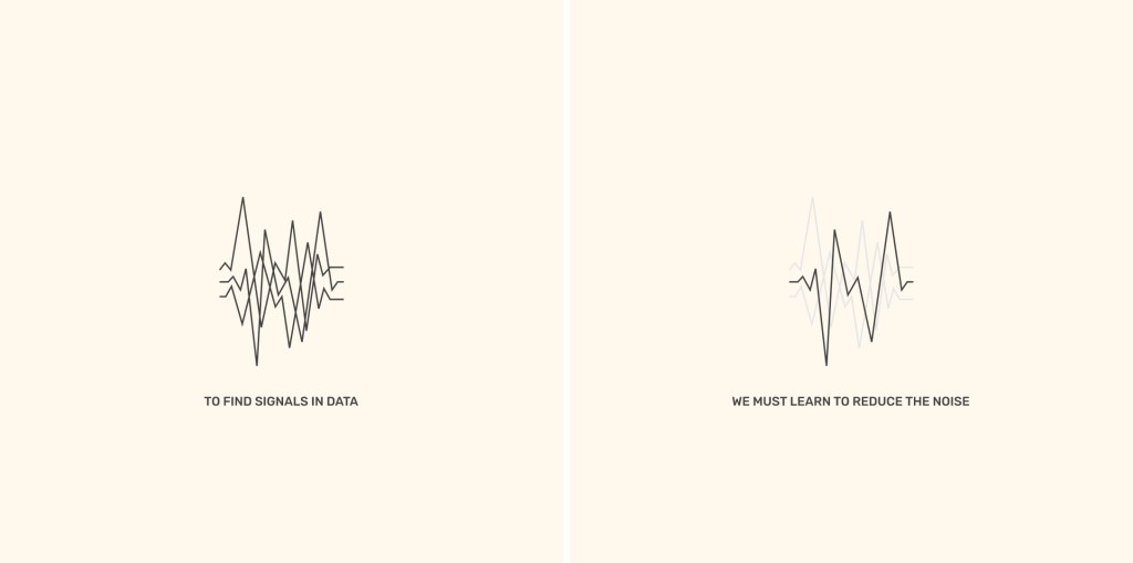 “To find signals in data, we must learn to reduce the noise – not just the noise that resides in the data, but also the noise that resides in us. It is nearly impossible for noisy minds to perceive anything but noise in data.”