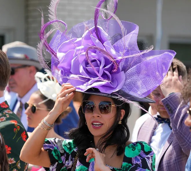 Source: Clare Grant, Scott Utterback, Matt Stone, Michael Clevenger, Sam Upshaw Jr., Albert Cesare, Jeff Faughender, PHOTOS: From wide brims to petite fascinators, all the eye-catching hats at Kentucky Derby 150, USAToday.com, May 4, 2024, https://www.usatoday.com/picture-gallery/entertainment/events/kentucky-derby/hats/2024/05/02/all-the-eye-catching-hats-from-the-2024-kentucky-derby/73228909007/.