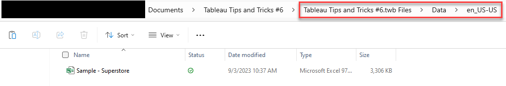 5. If you click through the sub-folders in this new sub-folder, you will see the original data file. In this case, it was the Sample-Superstore Excel file.