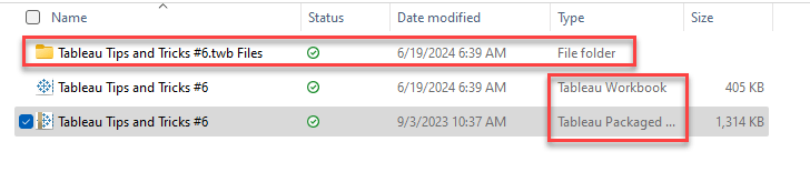 - In File Explorer, go to the folder that contains the packaged Tableau workbook. It will have a .twbx extension and have a type name of Tableau Packaged Workbook.