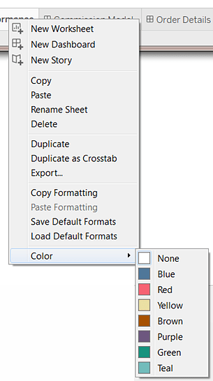 To make it easier to identify and group sheets, you can assign a color to sheets. You can select from seven different colors. Selecting None clears the color.