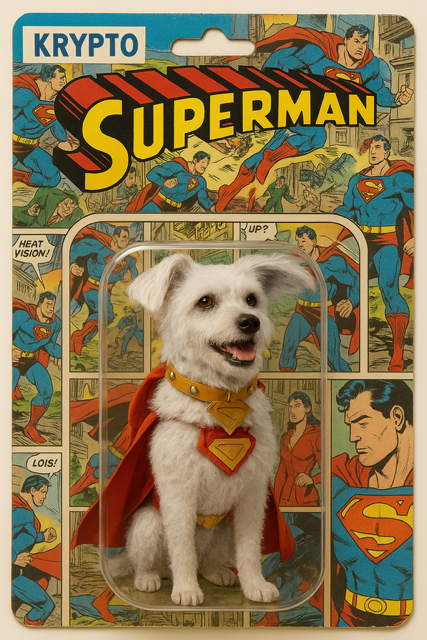 For those of you who know me well, you know my two heroes growing up were Harry Houdini and Superman. With the new Superman movie debuting July 11th, we have already seen that Krypto is full of piss and vinegar (my apologies if this offends you; it was the first description I could think of. If you have not seen the four minute trailer of Krypto saving Superman, Google it and watch it.). I made an early action figure of Krypto, but did not like it. I think this one fits the bill better.