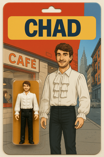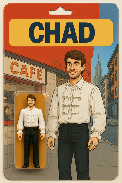 Chad’s figure is from the famous Puffy Shirt episode. It looks good on him, but Chad says, “I don’t wanna be a pirate!”