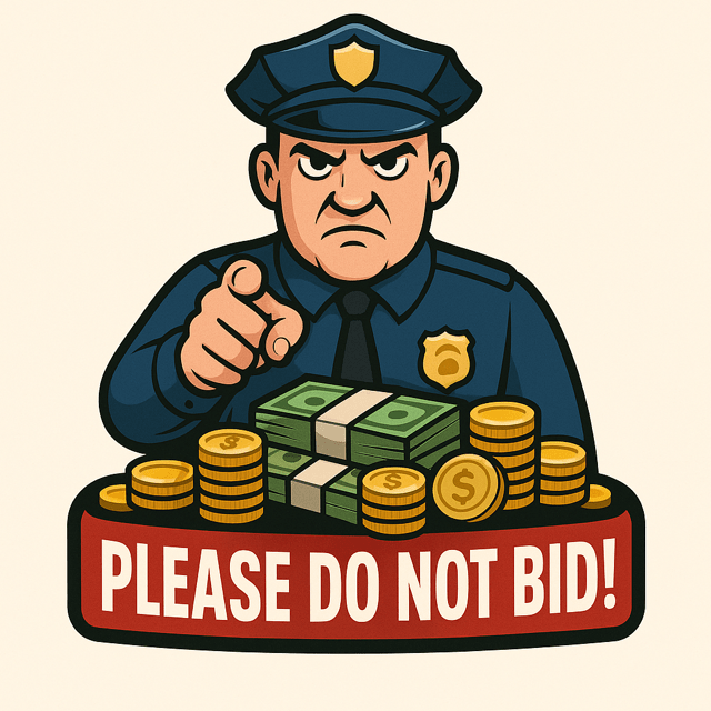 I have several friends with eBay Live auction stores. One of the things that may occur during an auction is that a person will make an offer on something they see in the background that they like. If the eBay seller agrees to it, they would hold up a piece of paper saying “Do Not Bid!” as the only one who should bid on the offer is the person who made the offer. I made some stores their own Do Not Bid Logo for their auctions. Here are a few of them.