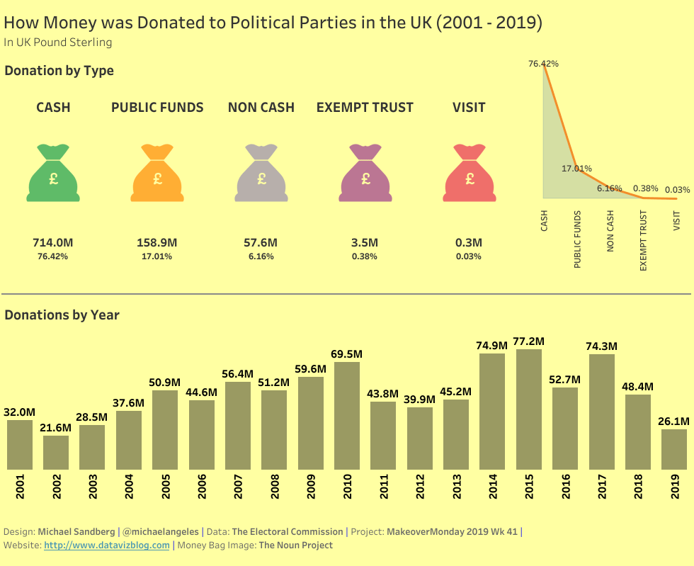 #MakeOverMonday 2019.41 – UK Political Party Donations