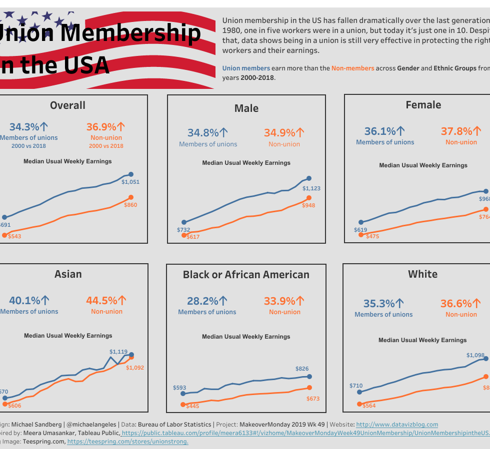 #MakeOverMonday 2019.49 – Union Membership in the USA