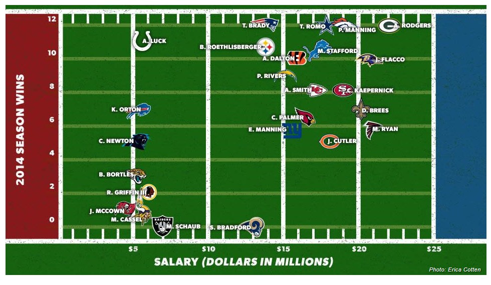 Graph: How Winning Relates to Salary for the Top NFL Quarterbacks