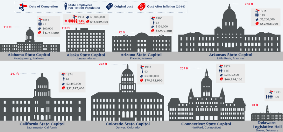 Infographic: The 50 State Capitol Buildings of the United States Illustrated to Scale