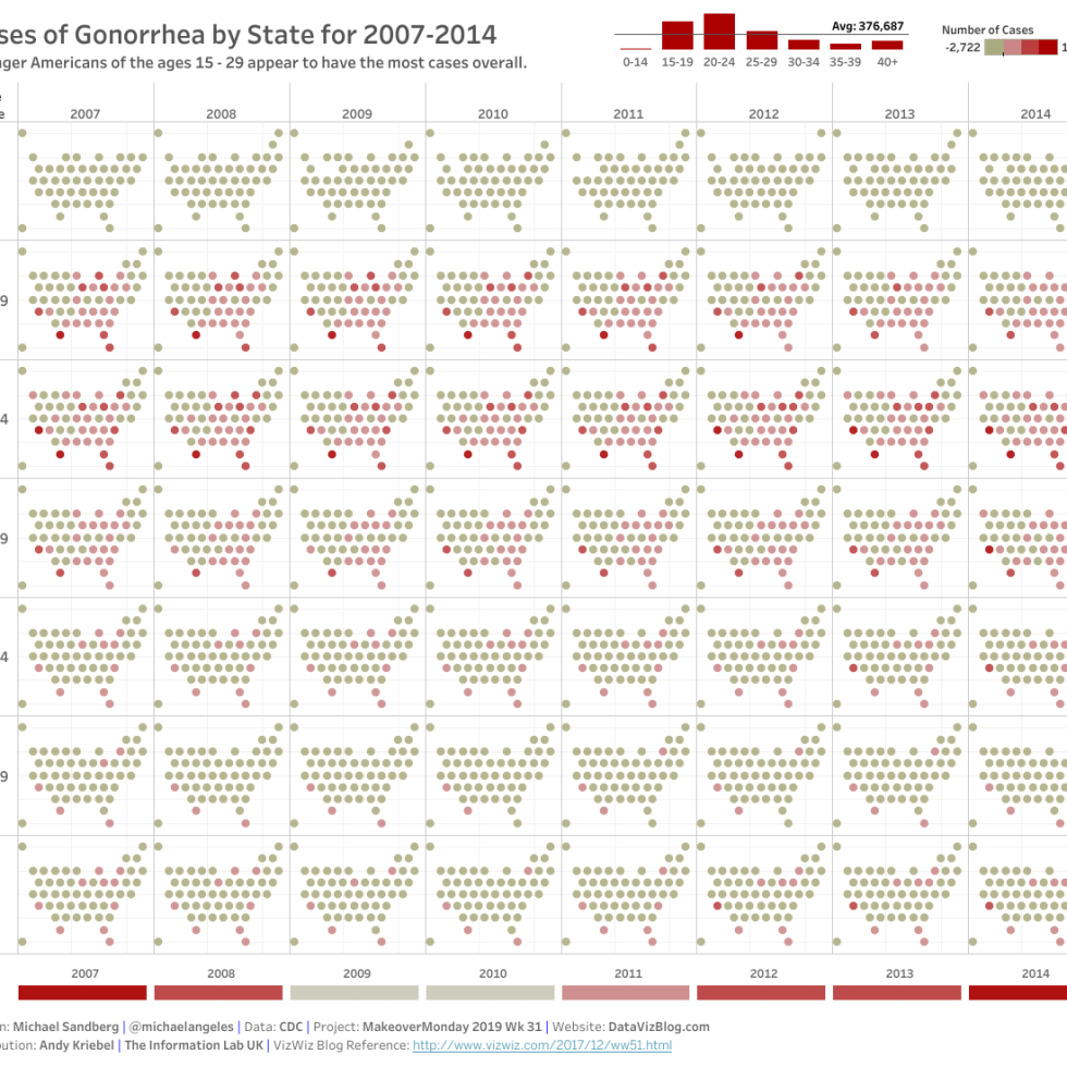 #MakeOverMonday 2019.31 – Cases of Gonorrhea by State 2007-2014